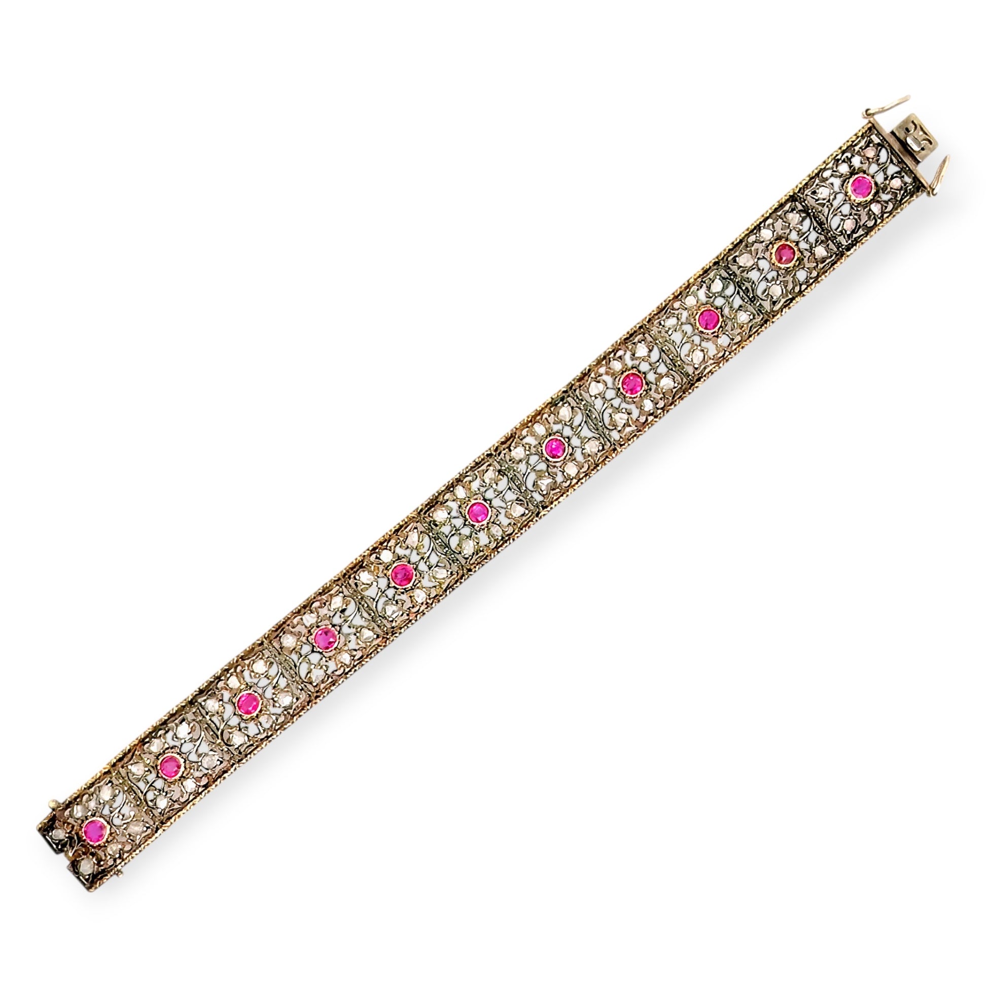 1920s Buccellati Gold Silver Ruby Diamond Openwork Bracelet
