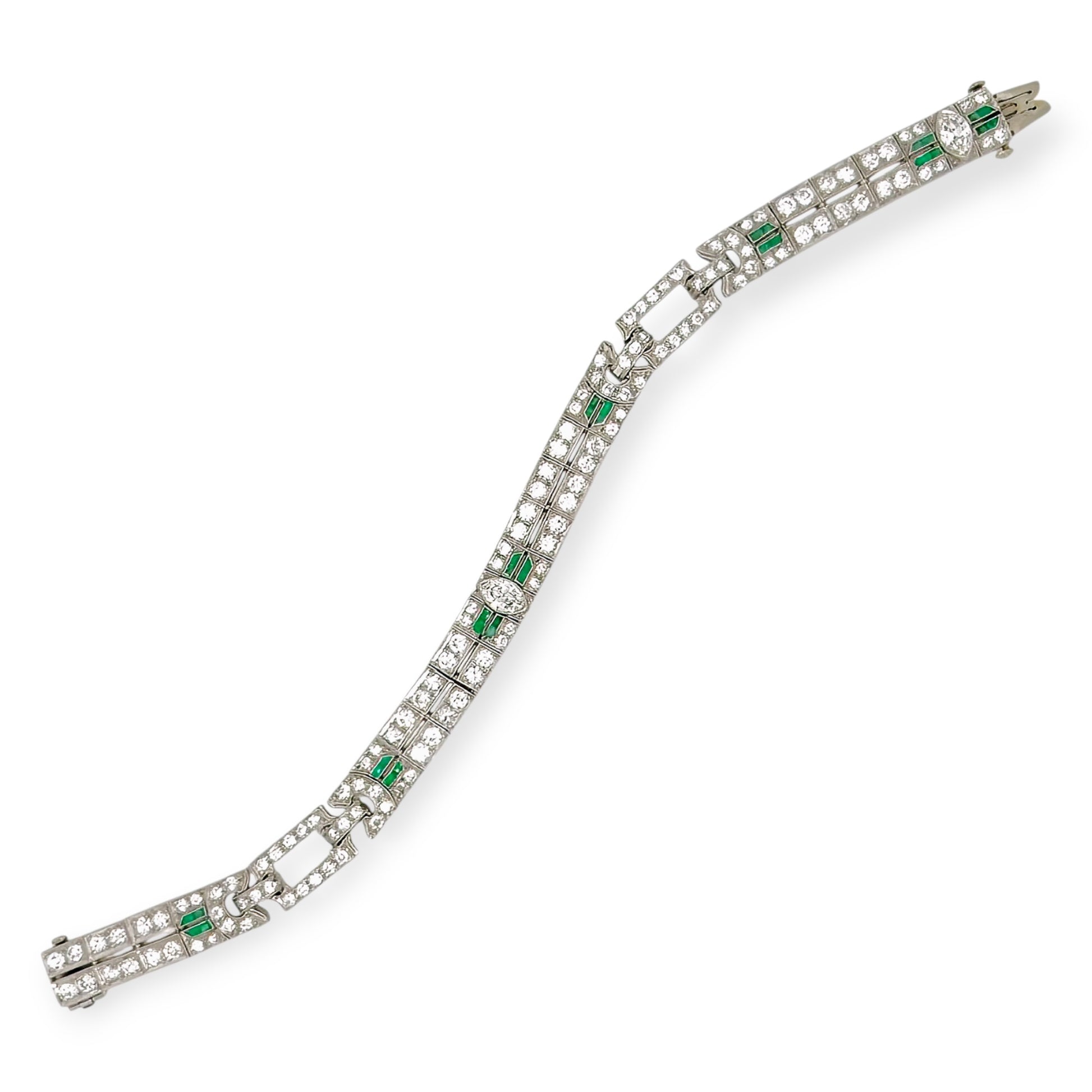 Art Deco Emerald Diamond Platinum Bracelet
