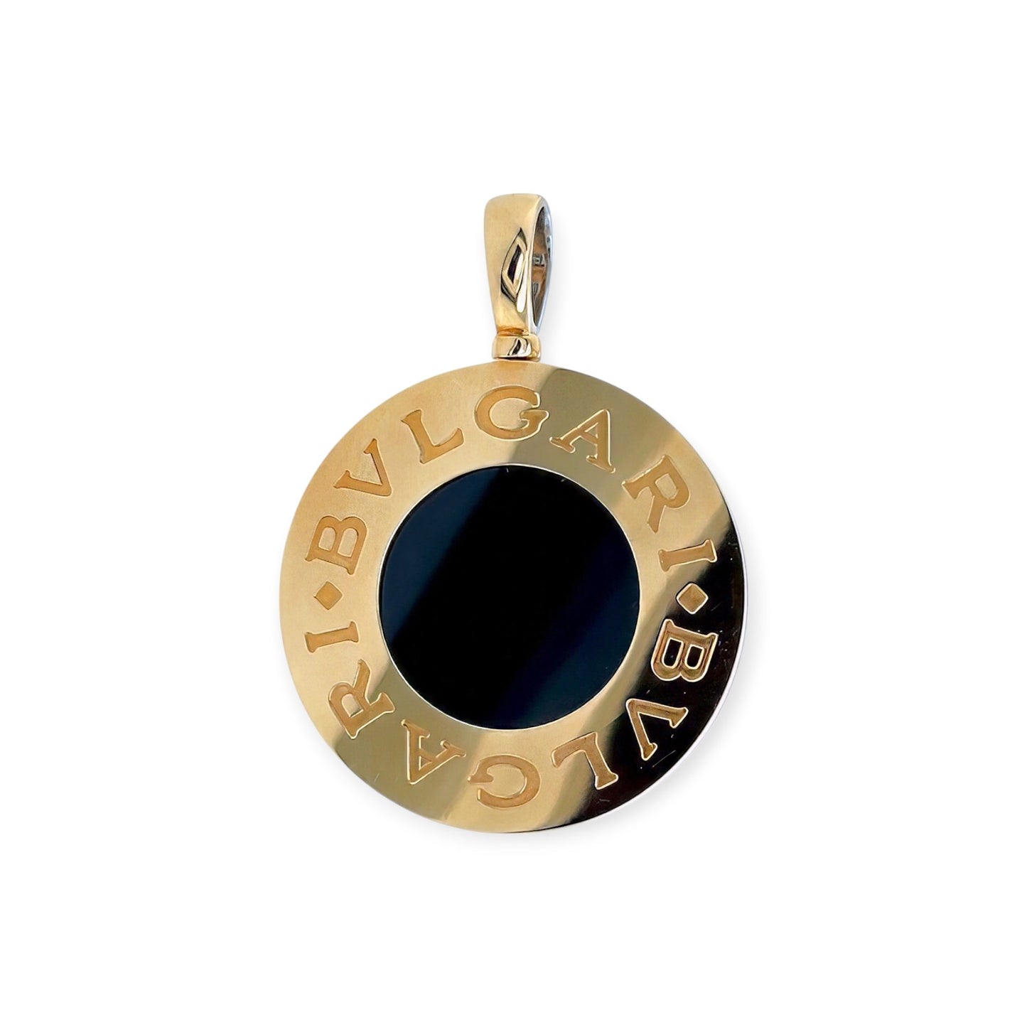 Bulgari Black Onyx Gold Stainless Steel Disc Pendant