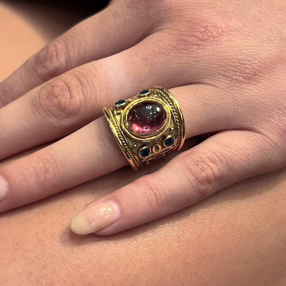Elizabeth Gage Templar Pink Tourmaline Sapphire Gold Ring