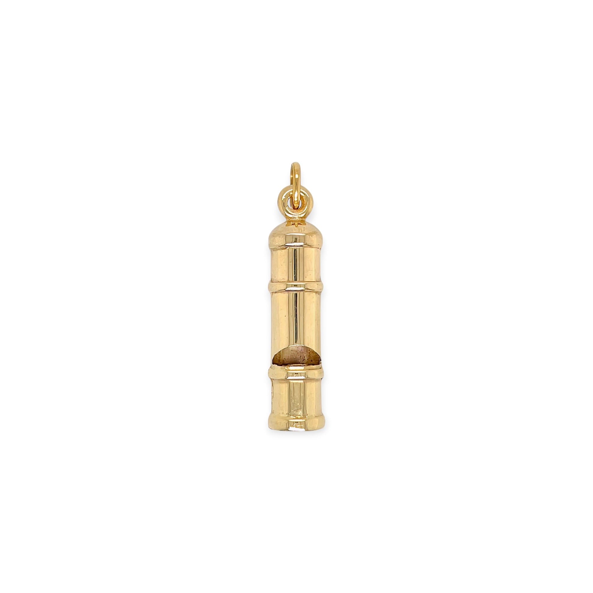 A 10 karat yellow gold pendant. Designed as a whistle.