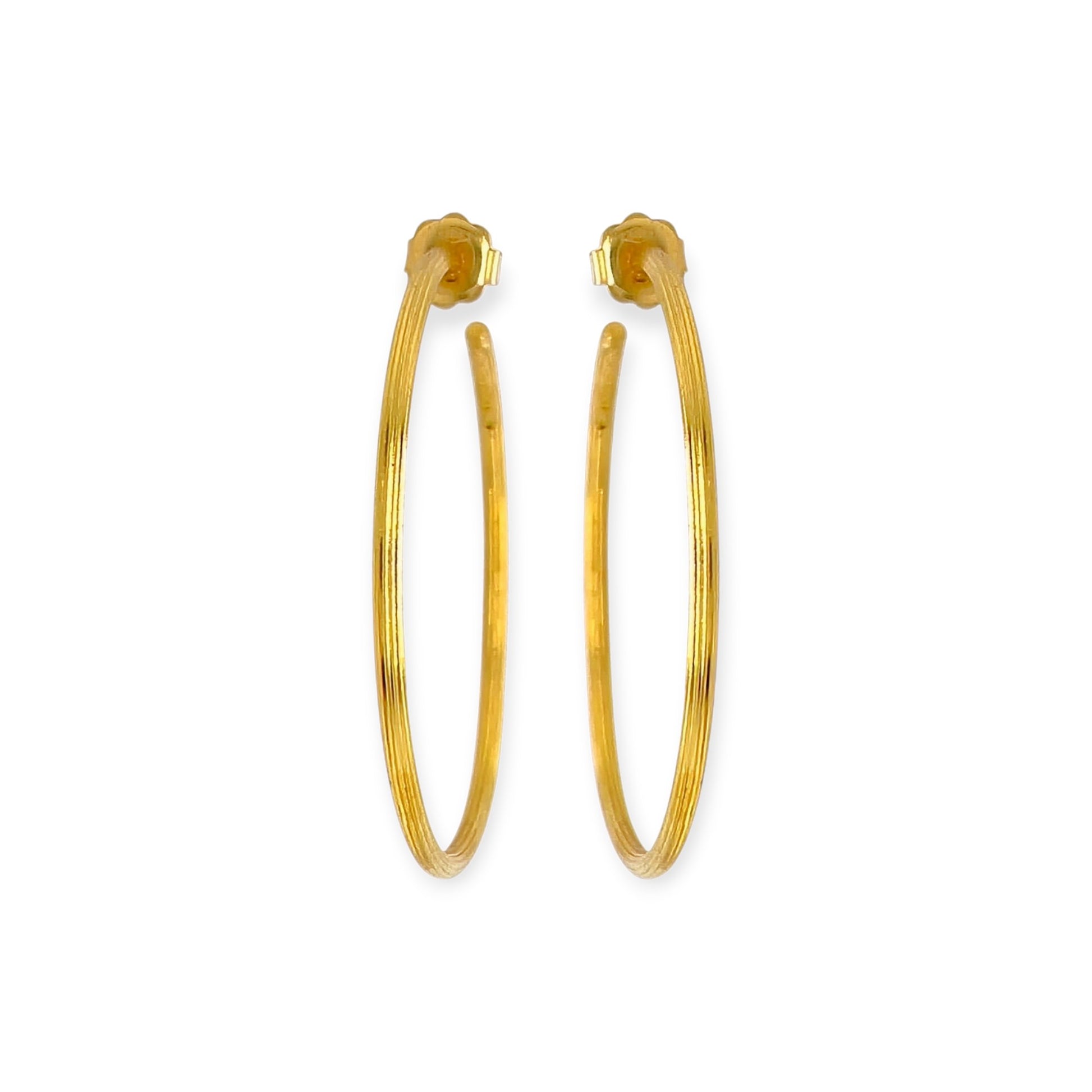 A pair of 18 karat yellow gold earrings, Lalaounis, Greece. Designed as a pair of vertically fluted hoops, with post and friction back.